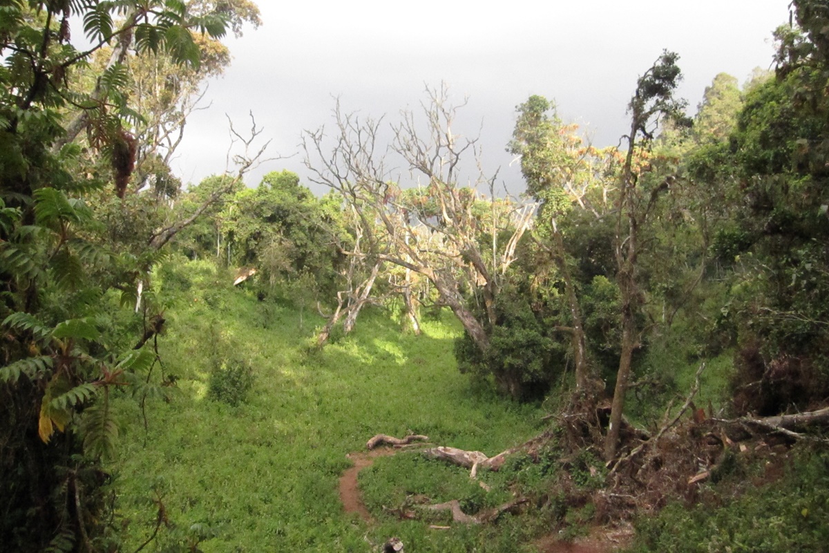 It is among the coniferous trees that we began our way up than we continued to follow the path in a forest of broad-leaved trees. Concerning the decor, I have always liked passing through a forest because the atmosphere relaxes me and the scenery is simply incredible. Besides, the African vegetation has a lot of surprises to offer to the foreigner. Now, I was feeling the frenzy. I was in an environment which was quite different from my country.